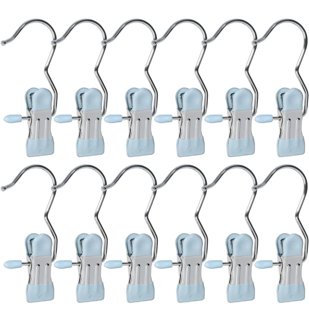30Pcs Upgrade Double Head Clamp Dipped Clothespin for Laundry Hooks with Clips, Boot Holder, Hanging Clips, Portable Multifunctional Hangers Single Clip Space Saving for Jeans, Hats (30, Blue