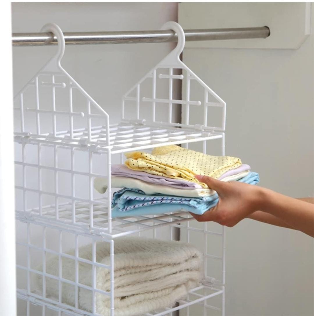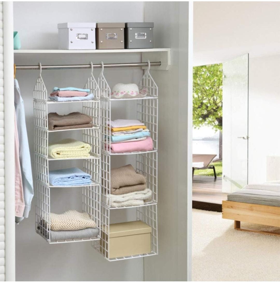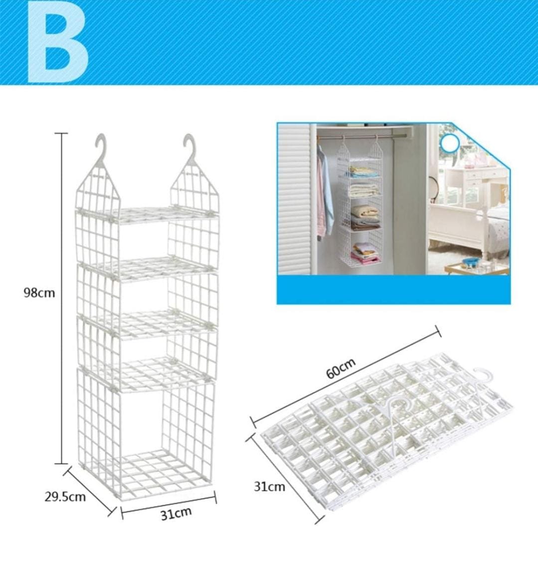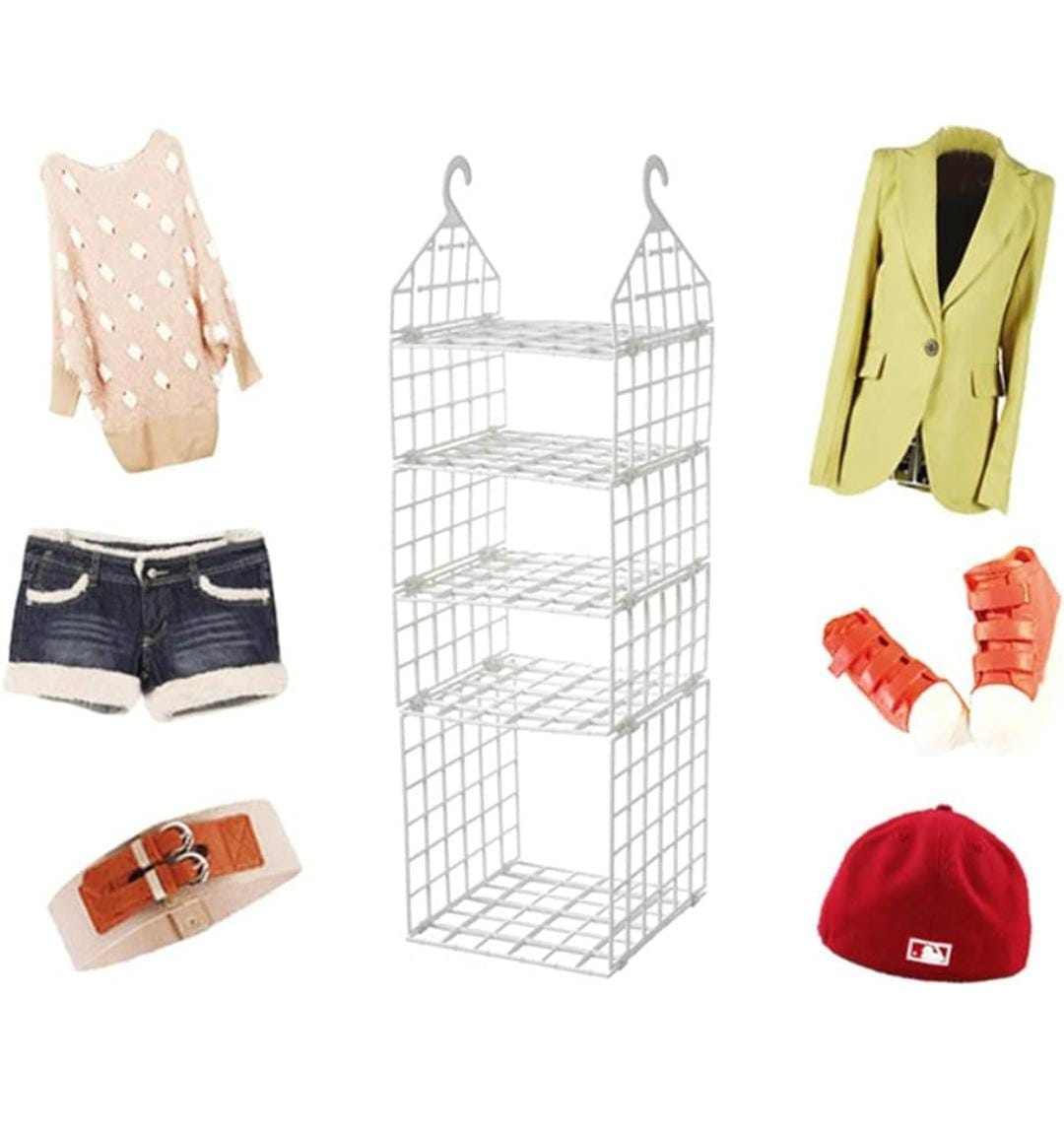 4 Tier Shelf Hanging Closet Foldable DIY Organizer Space Saver for Clothing Sweaters Shoes Handbags Clutches Accessories