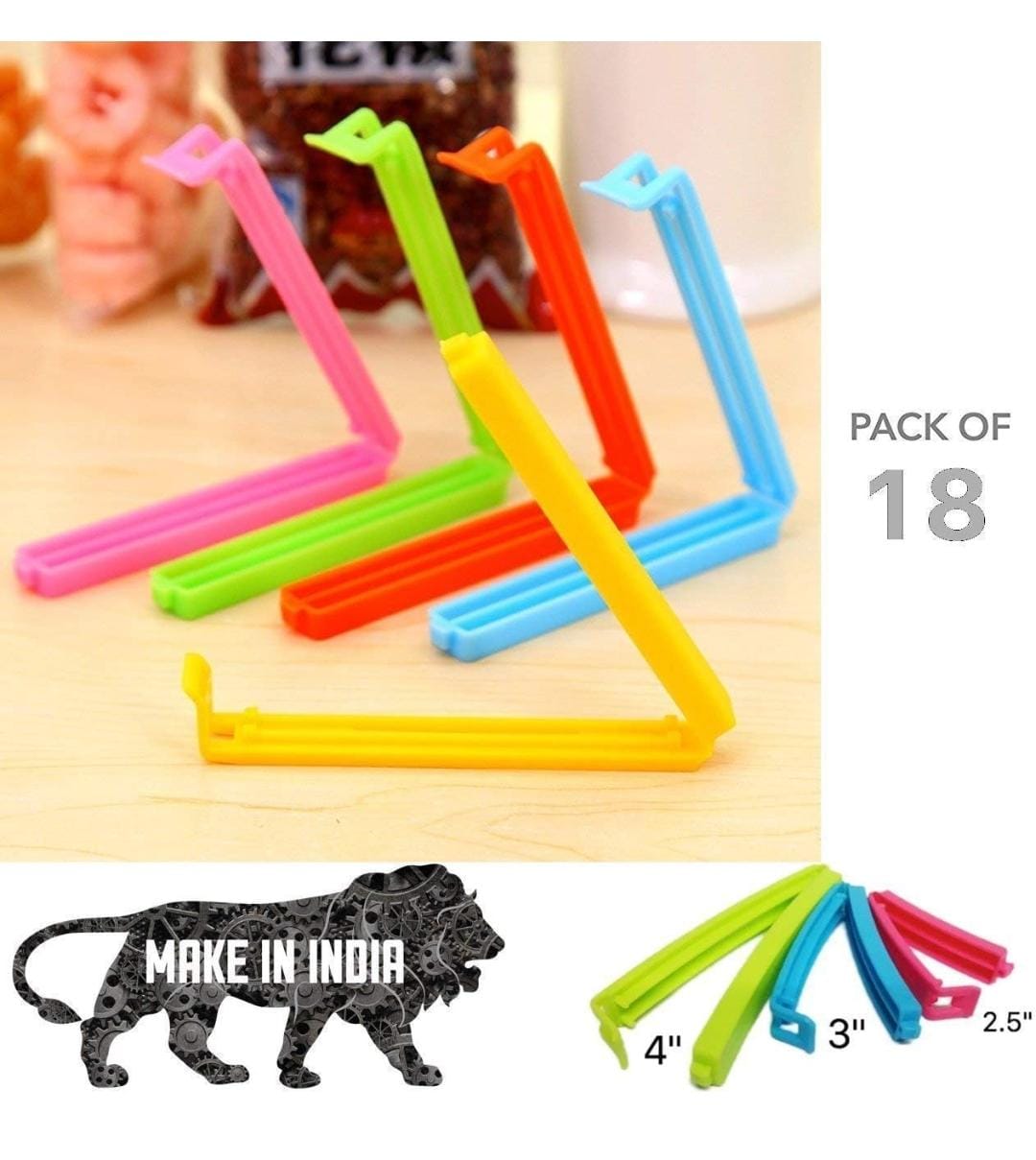 HOUSEHOLD CULTURE Multipurpose 18 Pcs Food Snack Plastic Bag Clip Sealer/Packet Sealer Clamps/Manual Vacuum Bag Sealer/Food Pouch Clip/Bag Zipper for Home Kitchen (Multicolor)