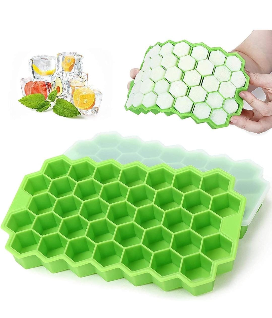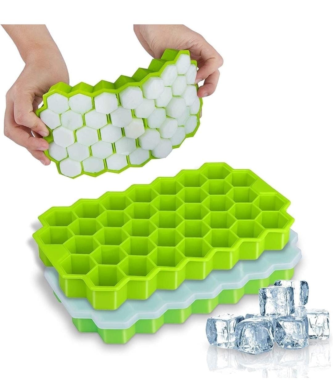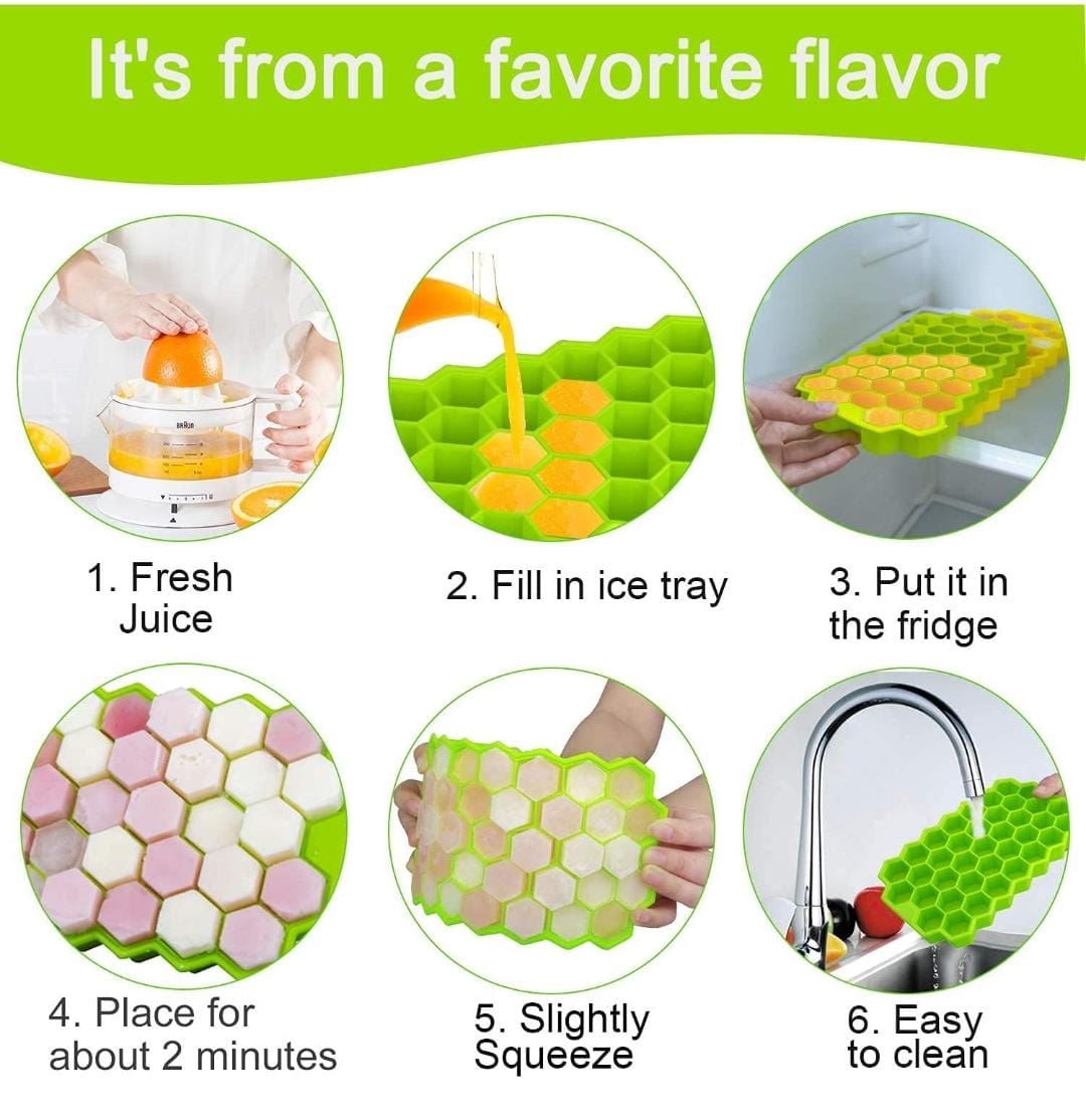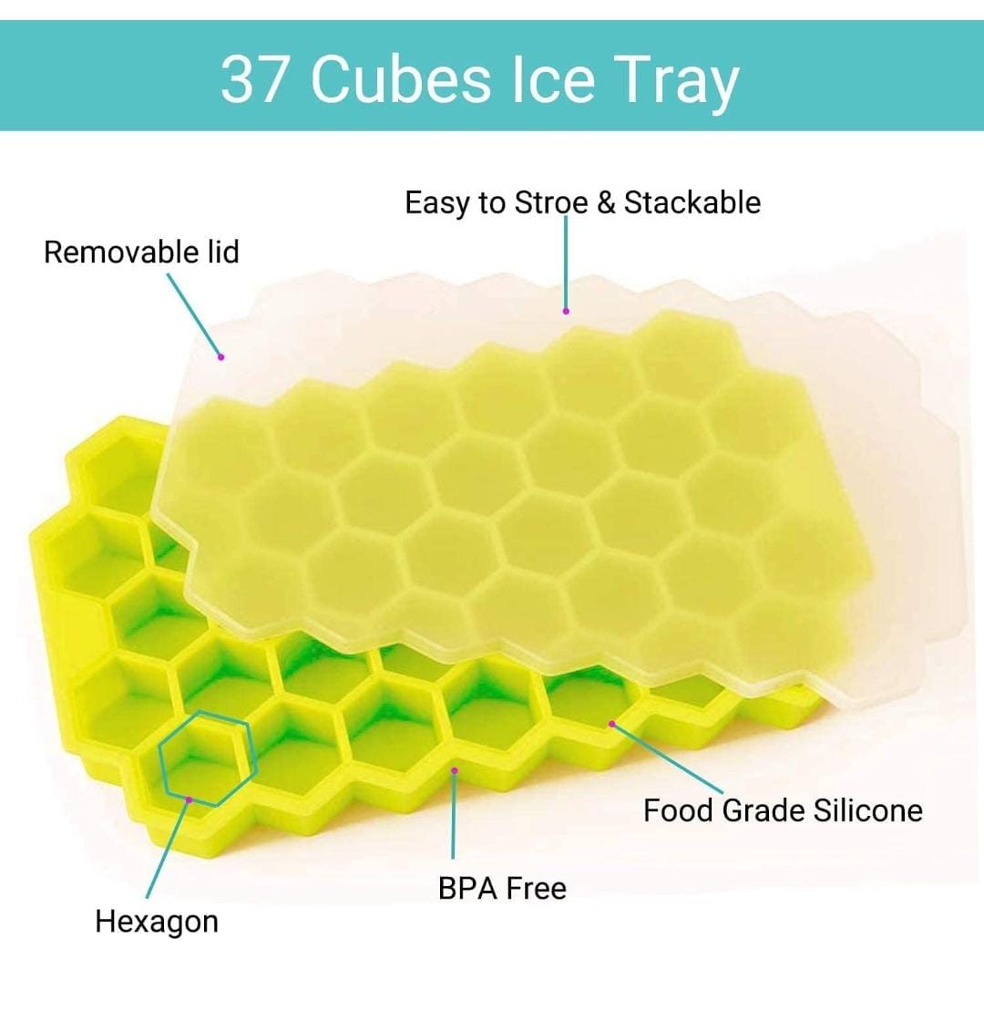 Pack 2 Flexible Silicone Honeycomb Shape 37 Cavity Ice Cube Tray Mold Trays for Freezer Moulds Small Cubes Easy Release Whiskey Fridge Bar Soft Smooth Rubber Ice Tray (Multicolor Pack of 2)