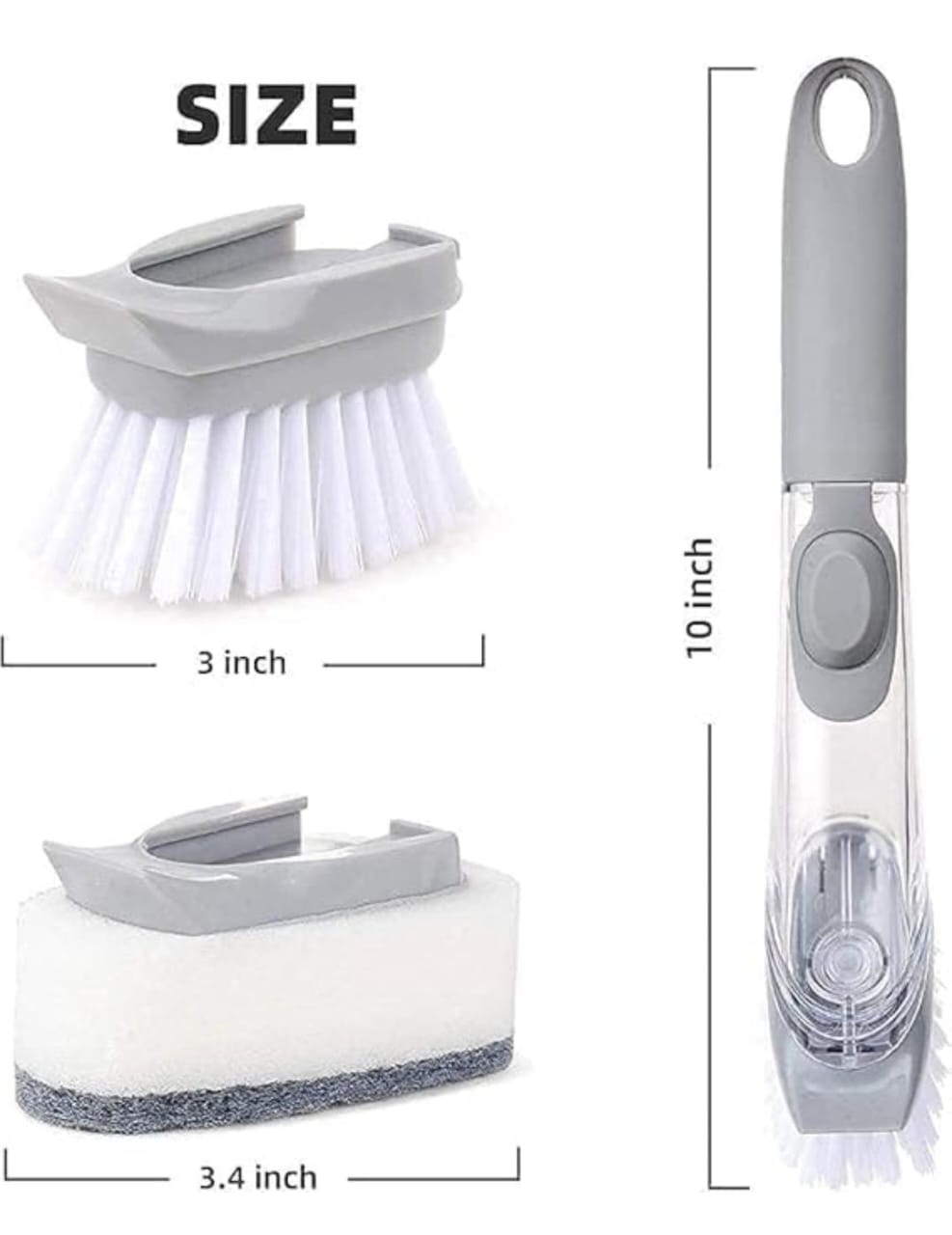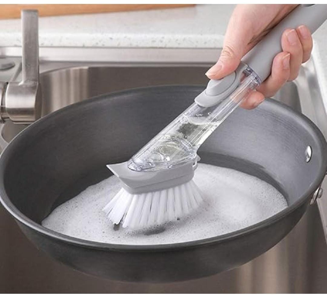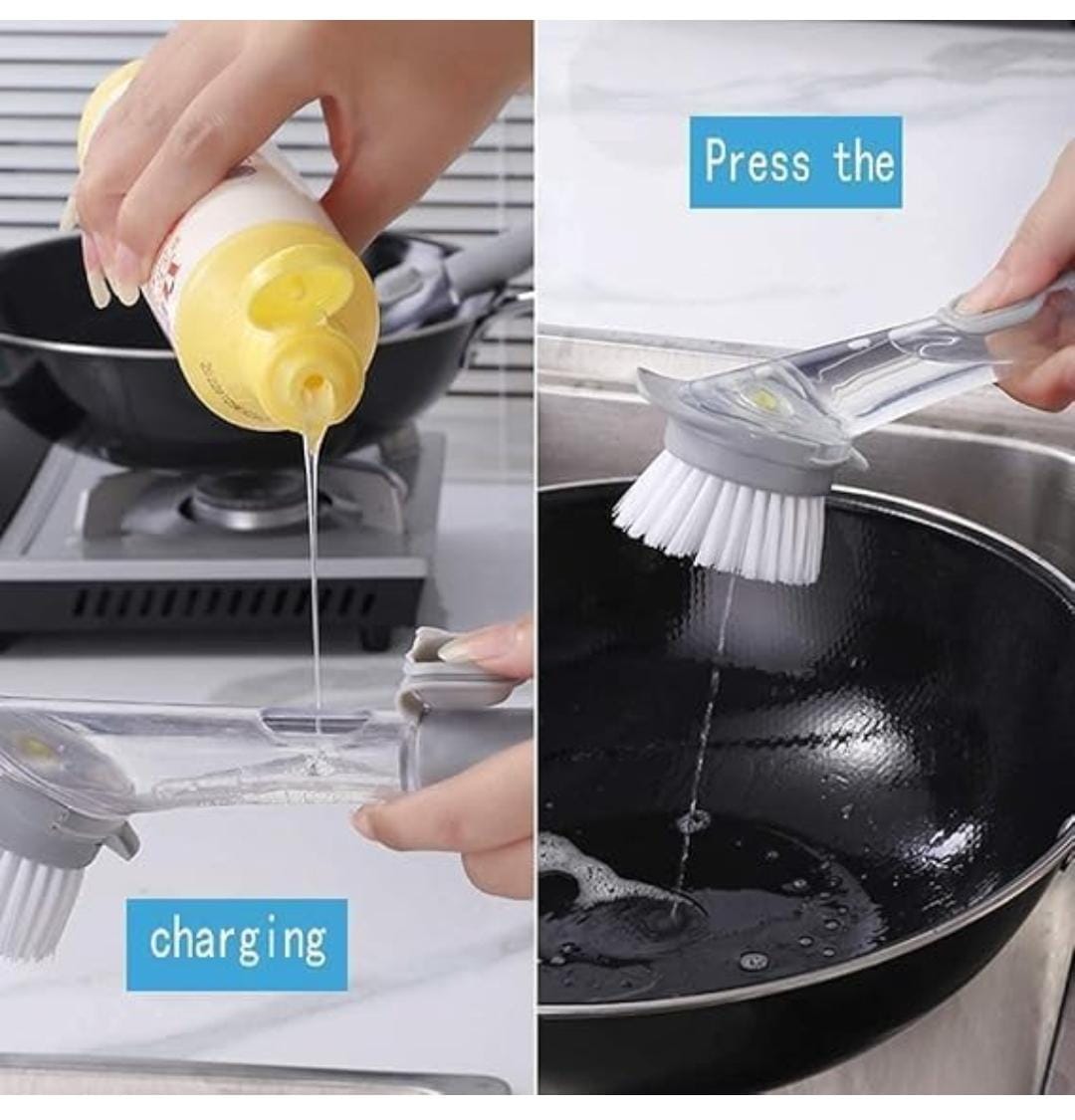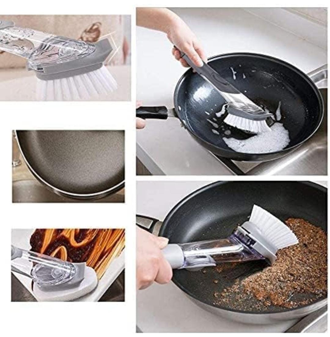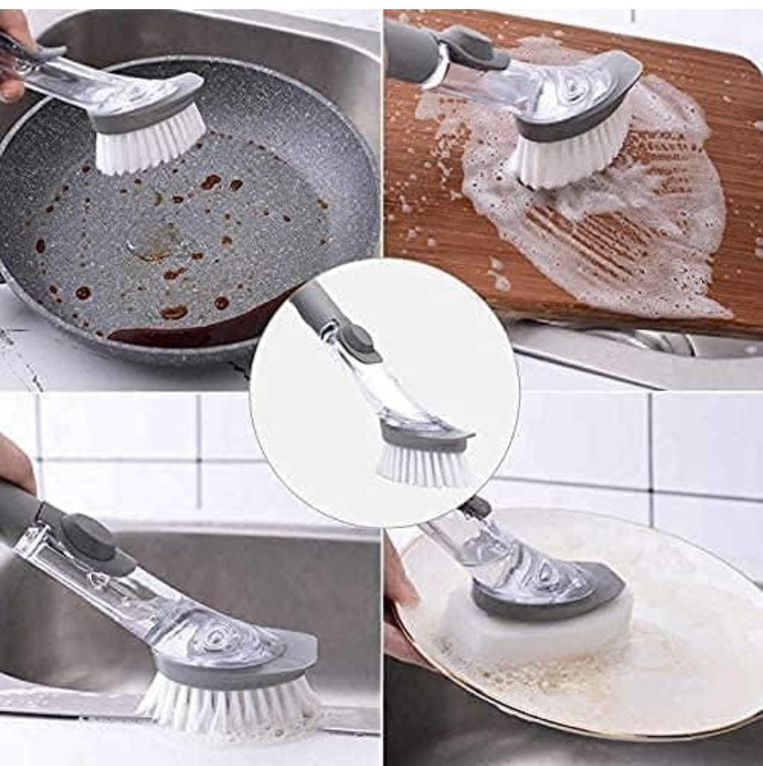 Automatic Liquid Tank Kitchen Utensils Sink Cleaning Brush Scrubber | Dish Bowl Washing Brush with Refill Liquid Soap Dispenser Handle Sponge  1 pcs