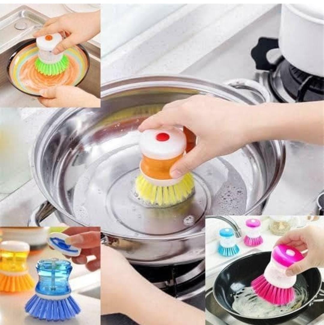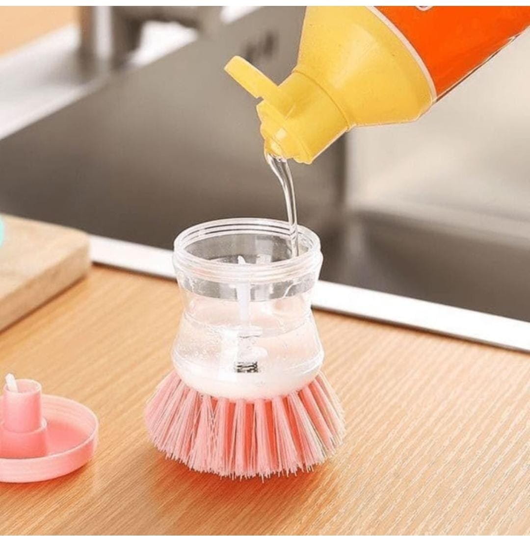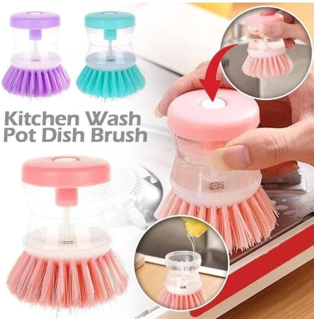 Dish/Washbasin Plastic Cleaning Brush with Liquid Soap Dispenser, Multicolour (Pack of 3)