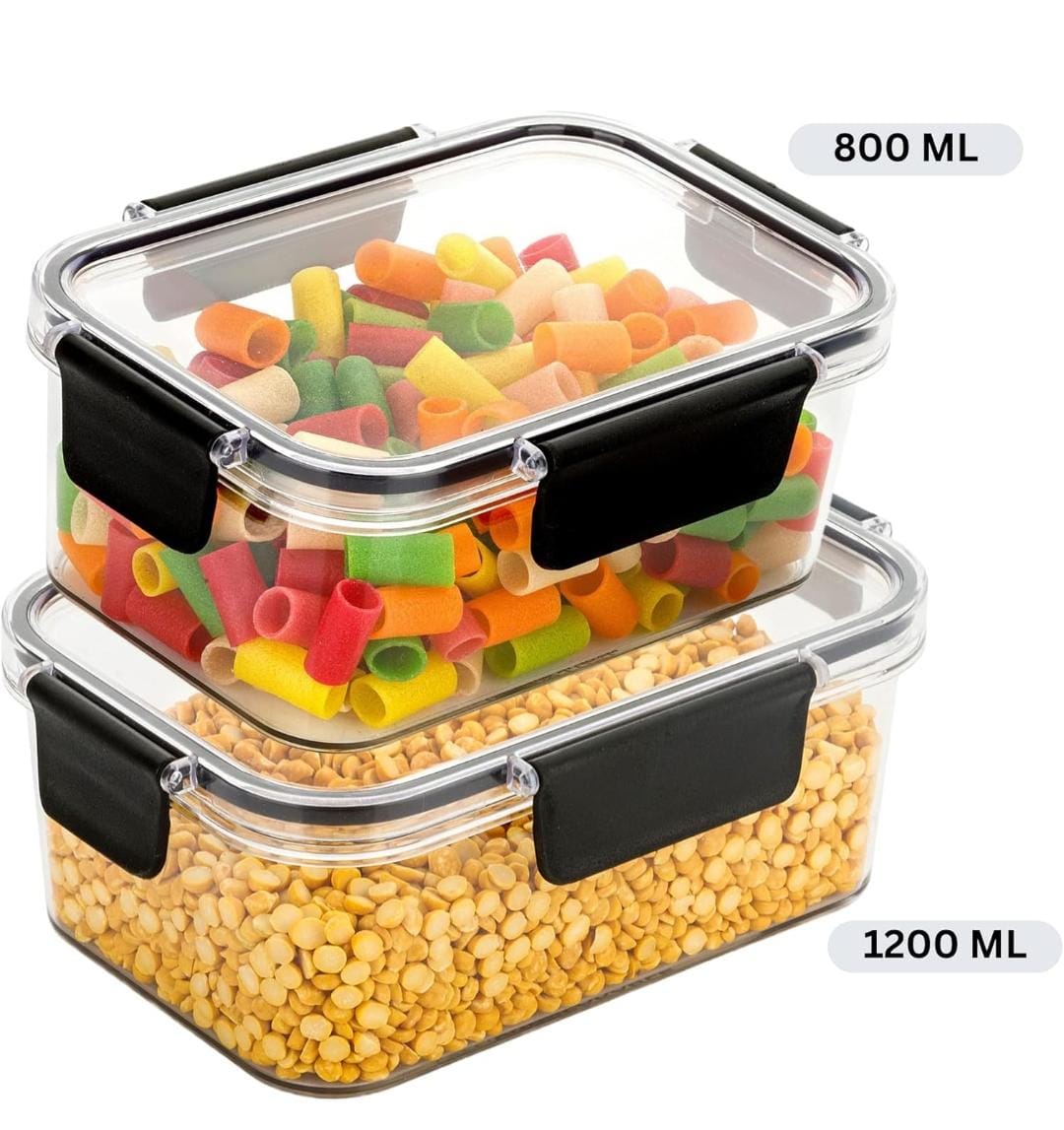 Food Storage Container | Transparent Container | Capacity 1200 ML / 300ML | BPA Free | Locking Lids | Leak Proof | Food Safe & Freezer Safe – Set of 2