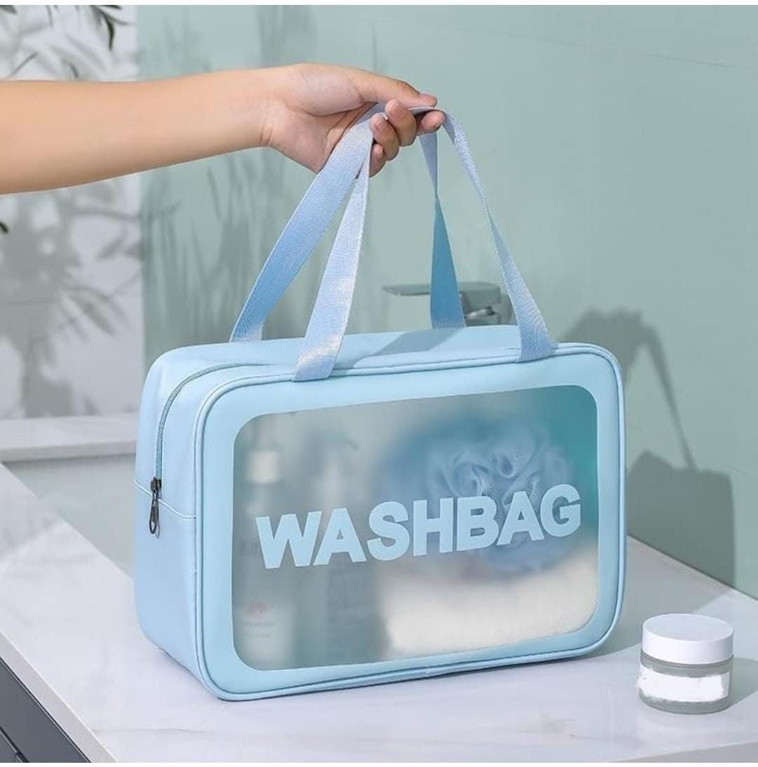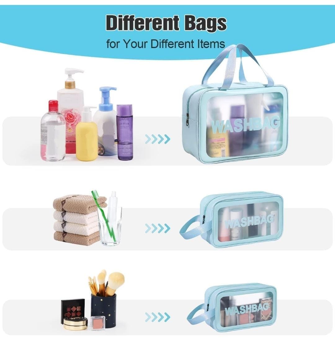 Stay lippy Wash Bag Pouch for Travel Kit Toiletry Bag Cosmetic Bag Make Up Box for Brushes,Accessories with Handle,Large Capacity Translucent Waterproof Travel Storage OrganizerSet of 3(Sky Blue)